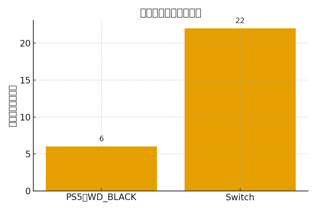 | ストレージ(PS5/PC) | PCIe4.0 NVMe、読込7,000MB/s級、ヒートシンク必須 | ロード短縮、エリア遷移の引っかかり軽減 | WD_Black SN850X 2TB(Amazon) |